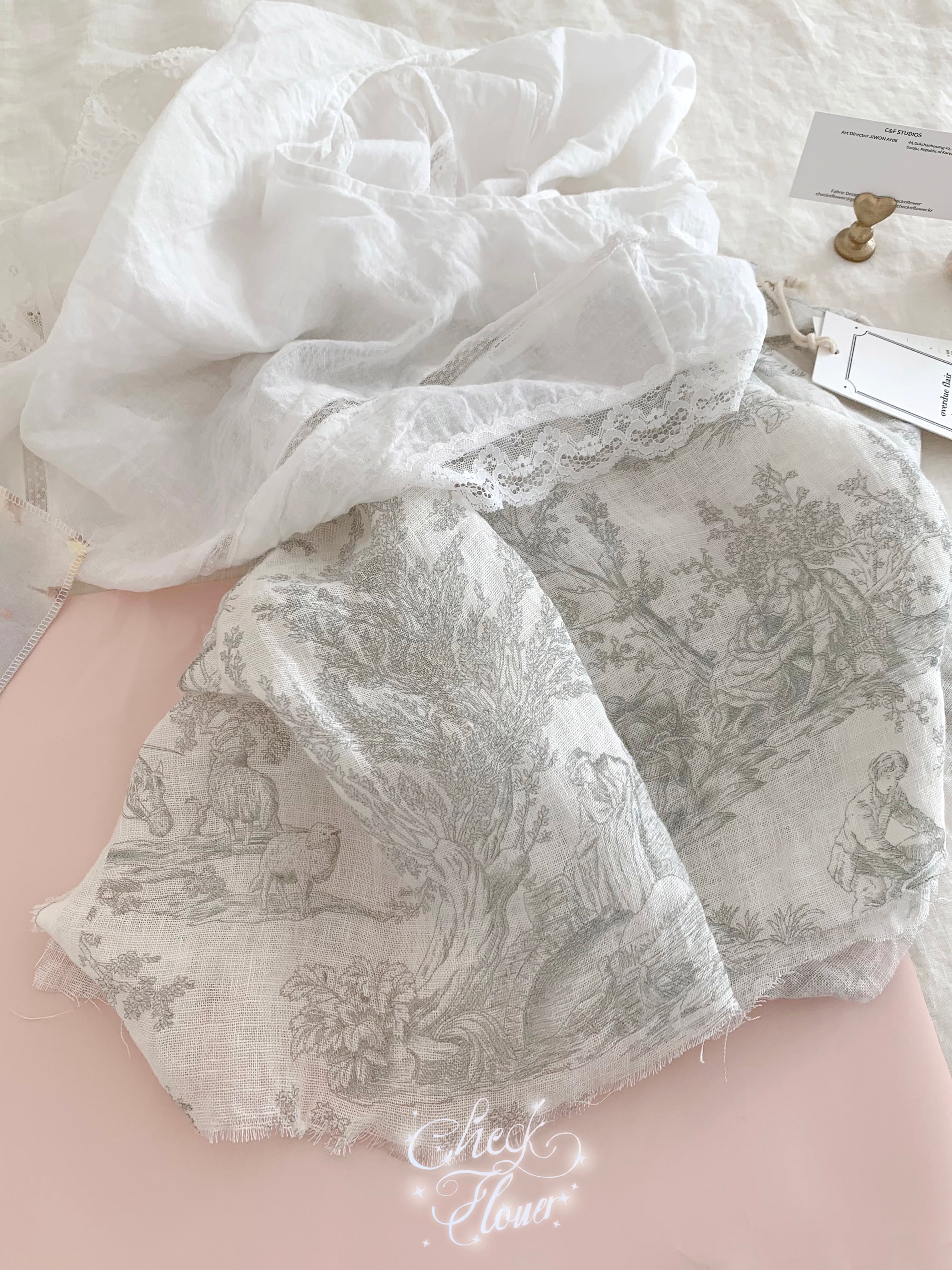 【即納】フレンチ トワルドジュイ 名画 ガーゼ リネン生地