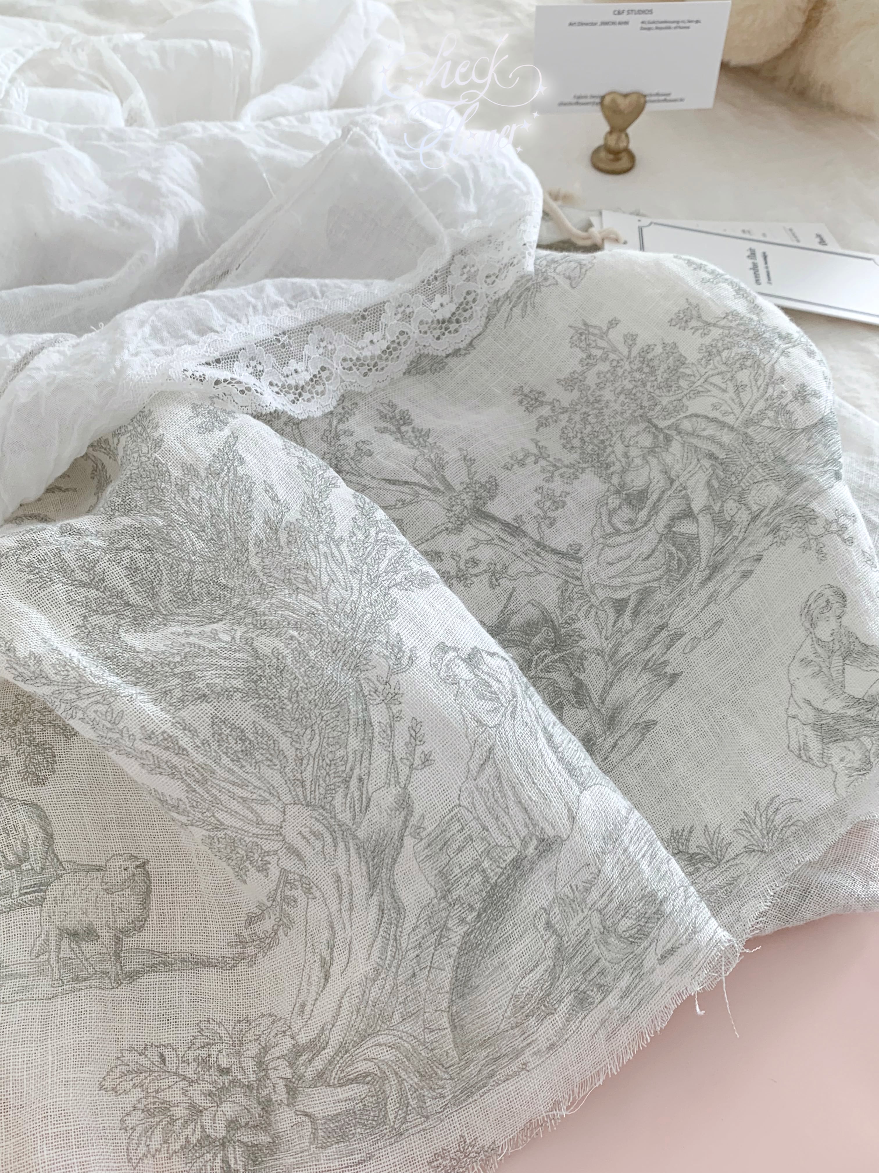 優雅なフレンチ調のトワルドジュイのガーゼリネン素材