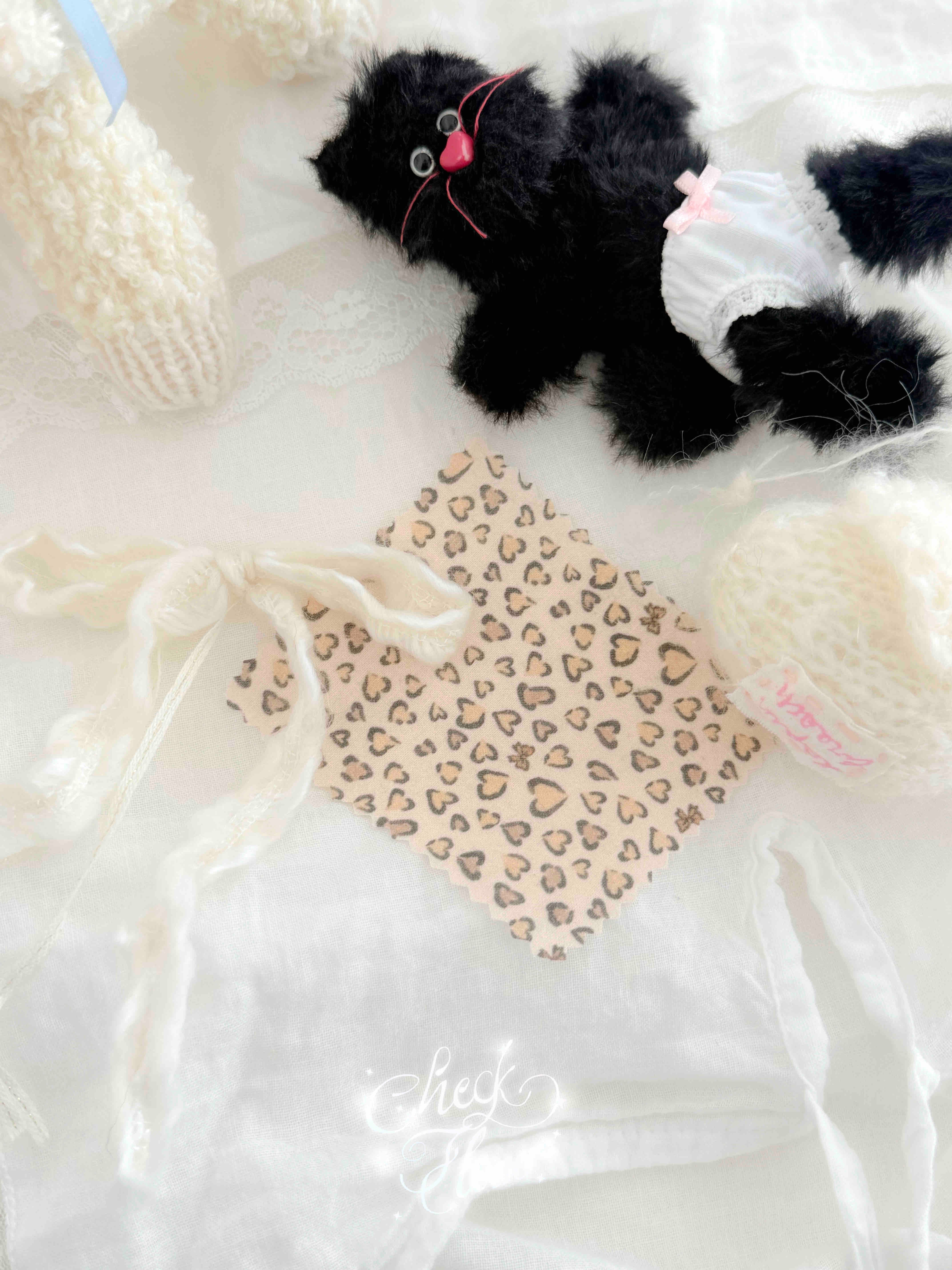 ドローイングした可愛らしいハートの中でリボンの入ったヒョウ柄は感性的なムードを逃さずにトレンディさは確実に生かしてくれるディテールに仕上がっています。