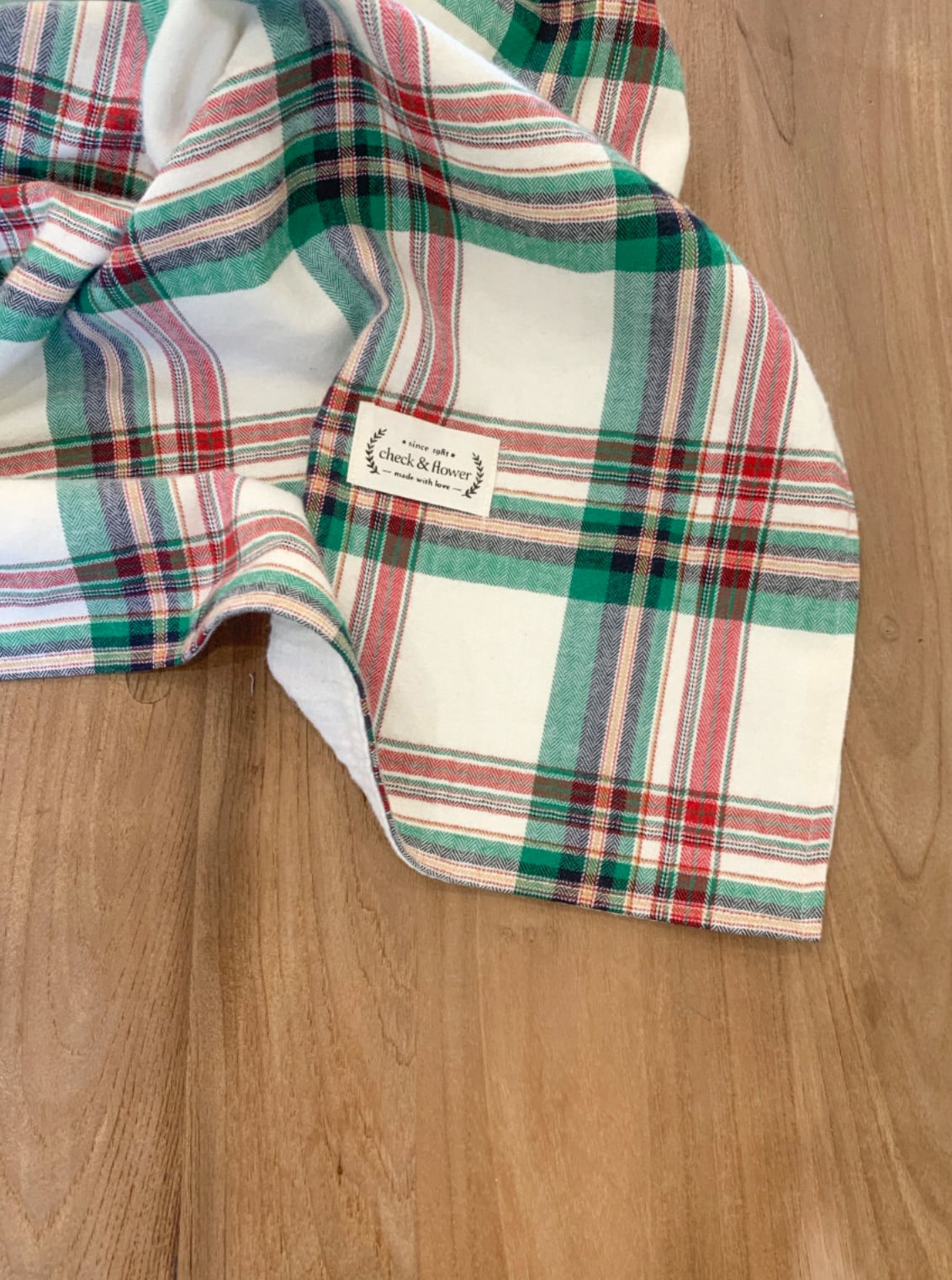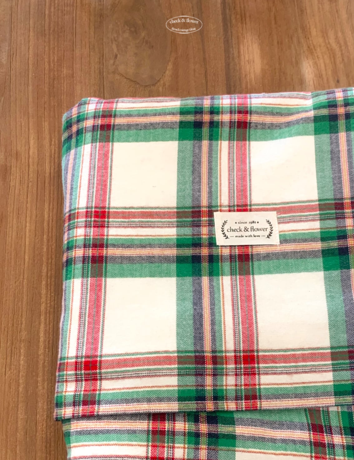 白いアイボリーの地に、クリスマスツリーを思わせる深いグリーンと、気品あるレッドを組み合わせた配色は check & flower だけのオリジナル。