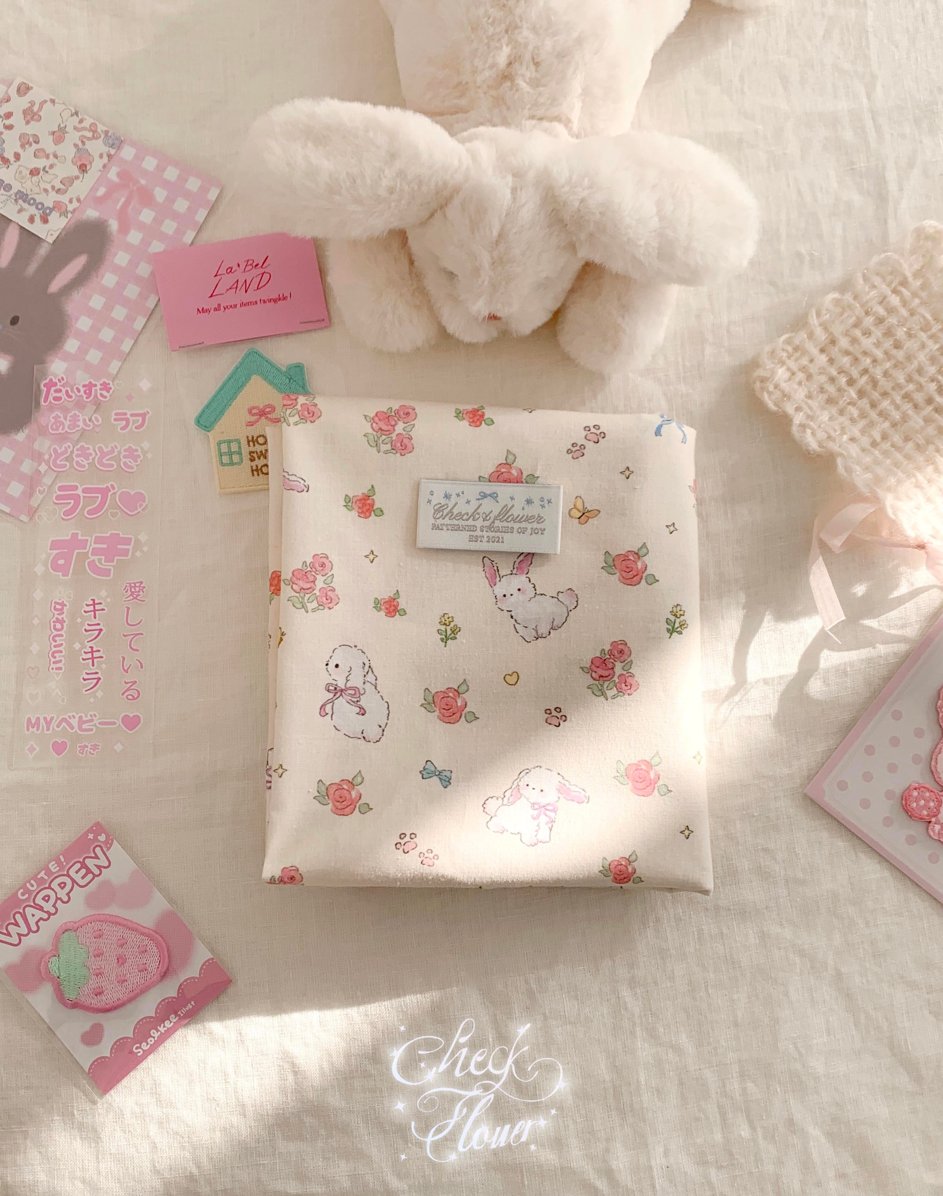 • 【即納】お花とうさぎ描画(コットン生地)