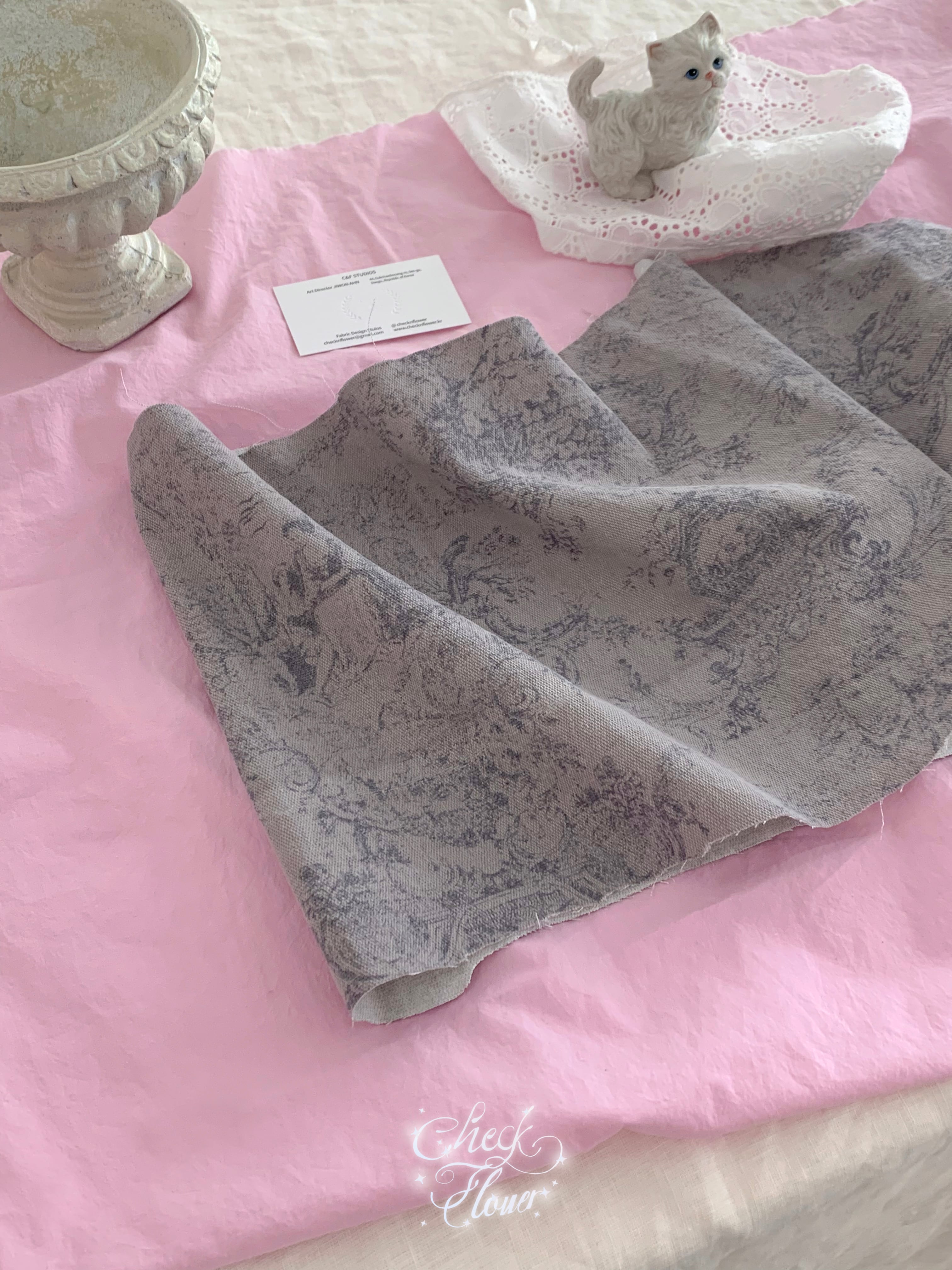 エレガントなフレンチ感性のトワルドジュイパターン、トレンディなデニムのカジュアルなムードが出会い、どこにも見られない魅力的な生地が誕生しました