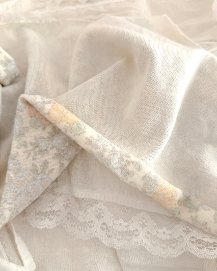 ヴィンテージフラワーパターンを落とし込んだテリー生地は、赤ちゃんの繊細な肌にも安心な、やわらかく信頼できる素材。