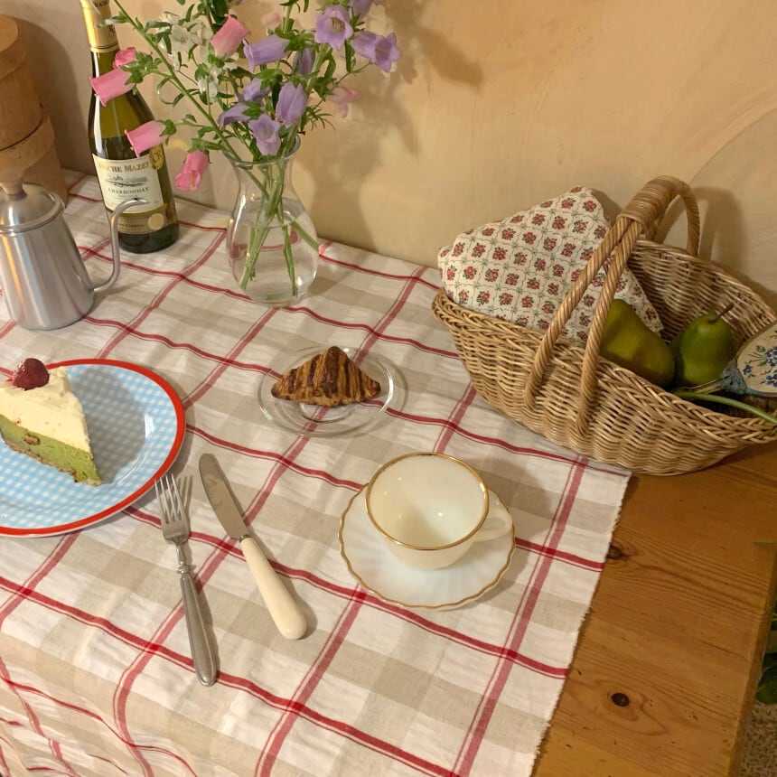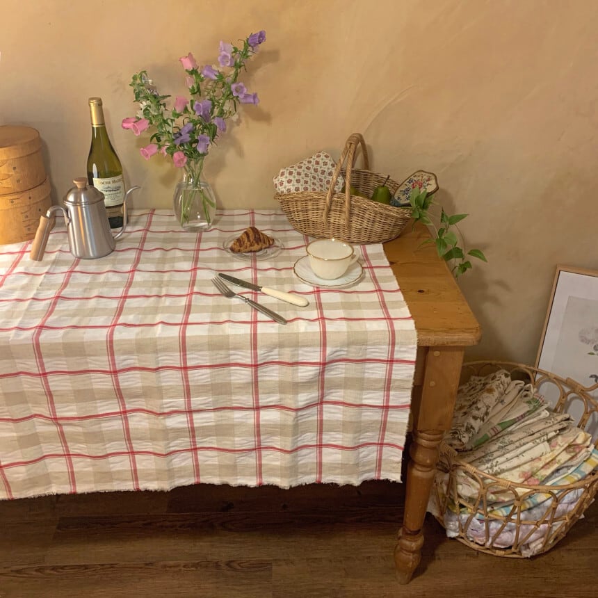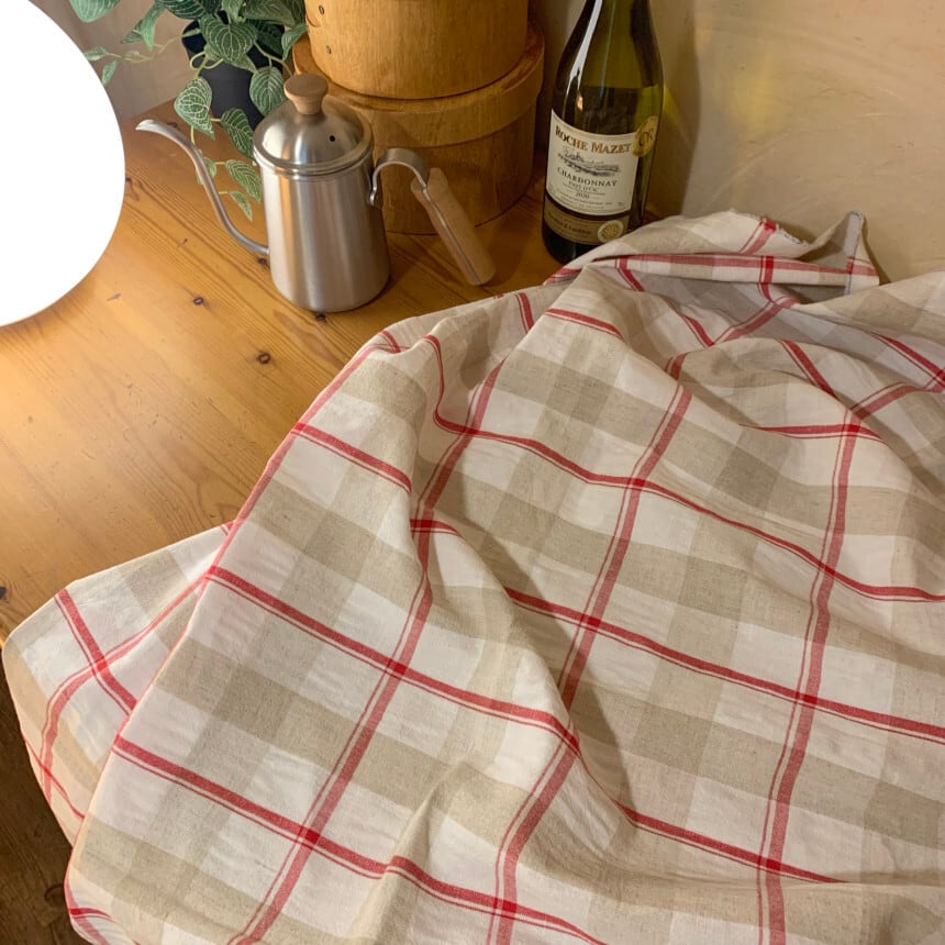 熟したリンゴのような美しいレッドがアクセントになったチェックリネン生地です。
