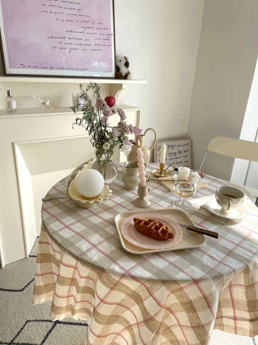 やさしいベージュベースのチェックにポイントラインを加えた、北欧感性を感じるデザインに仕上げました。