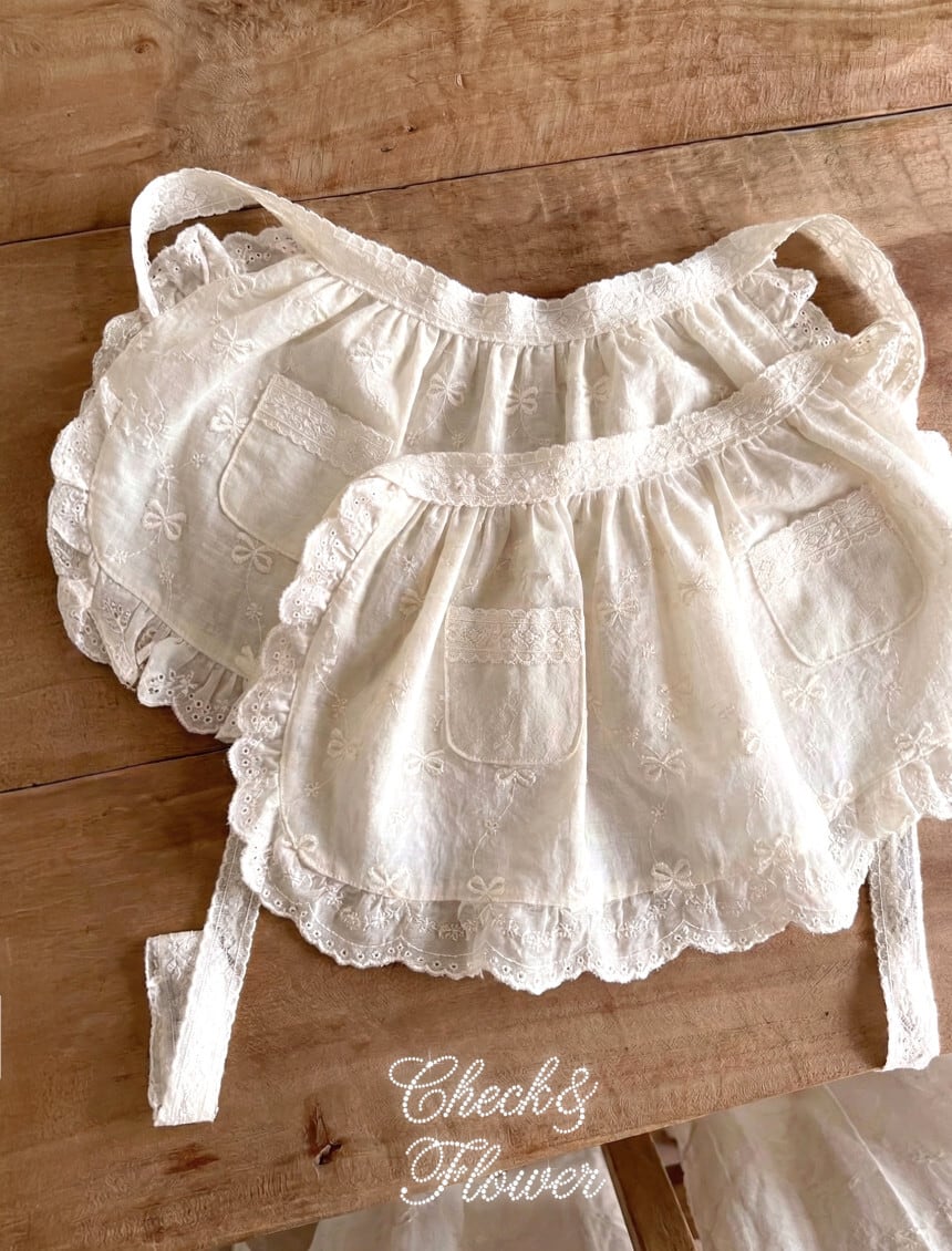 薄く軽やかなコットン生地の上に、童話のドレスを思わせるリボンと小花の刺繍を施しました。
