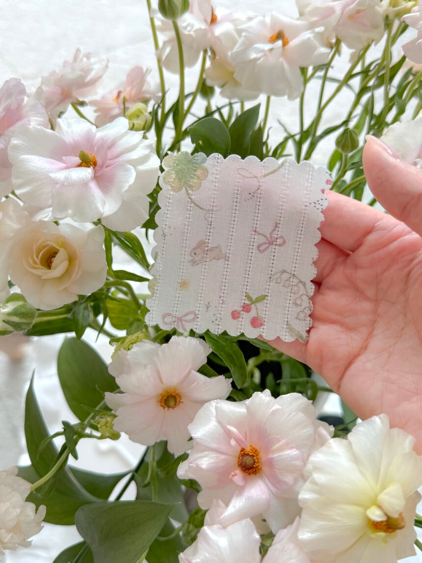 やさしく繊細なイラストが全体に均等に配置されており、どこを裁断してもバランスよく仕上がるのが魅力。