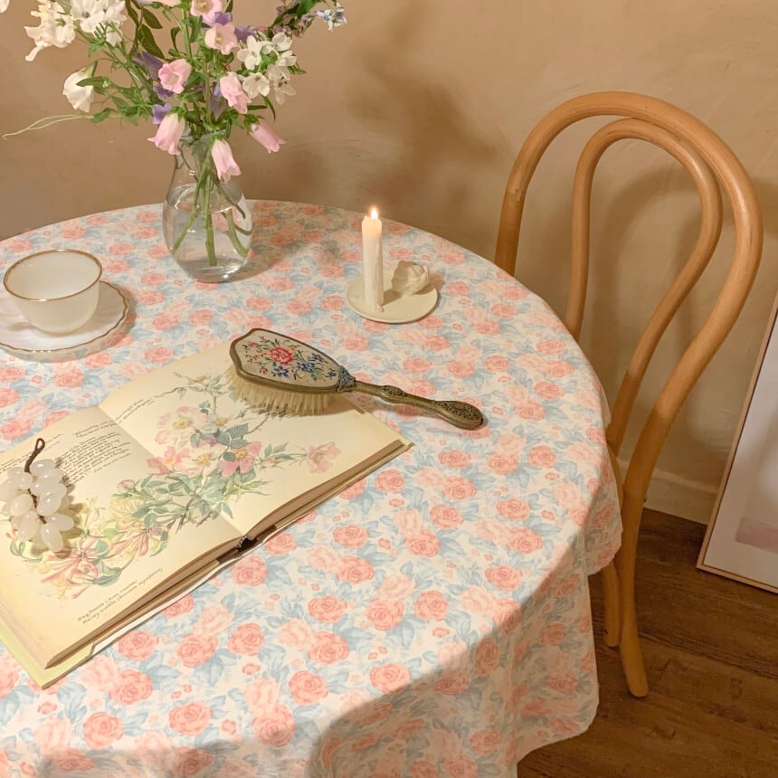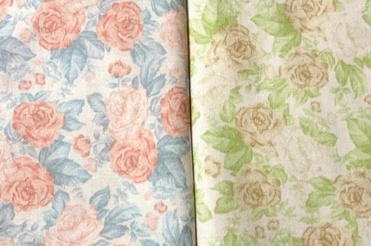 ほのかなクリームベースに、水彩画のようにやさしく描かれたピンクのバラが広がるファブリックです。