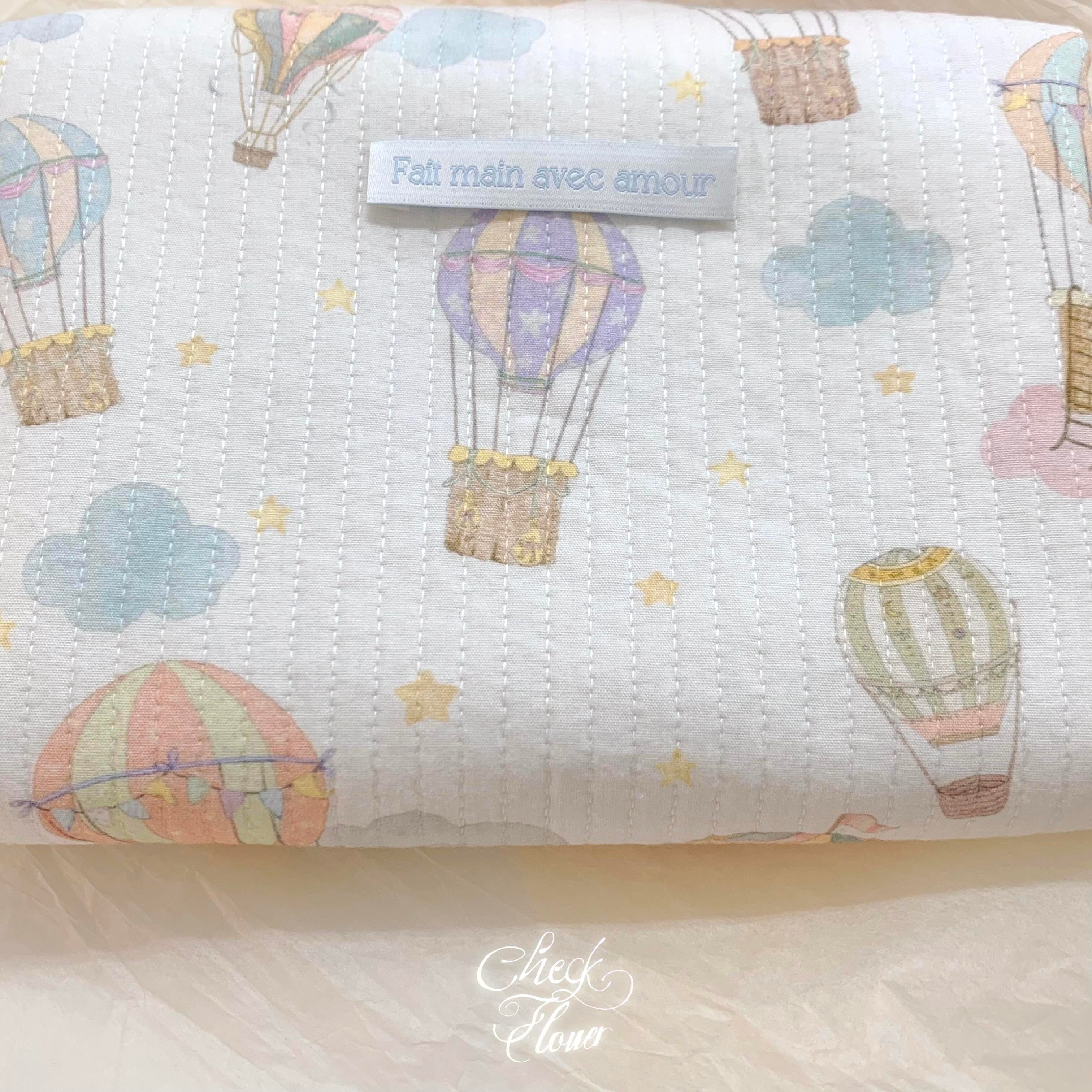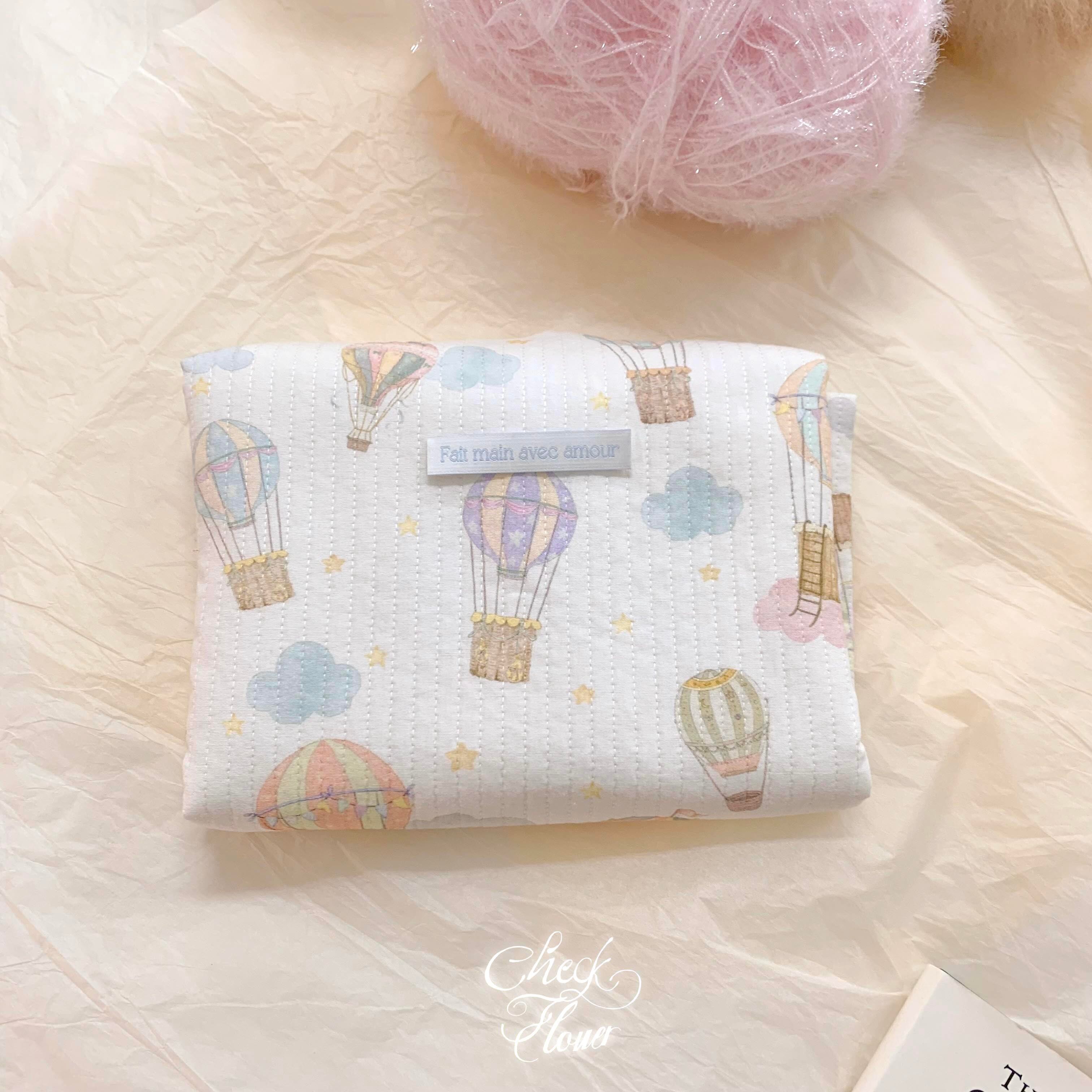 手描きとは思えないほど鮮明に描かれている気球デザイン 水彩画で描いています。 ダブルガーゼをゴルジ生地にしました check and flowerだからできるこのクオリティ♡ 素材 :コットン100%、ゴルジ生地 カラー:アイボリー・ピンク・ブルー 生地幅:145cm サイズ:気球サイズ約6cm 注文数:数量1=0.5y=45cm 原産国:韓国