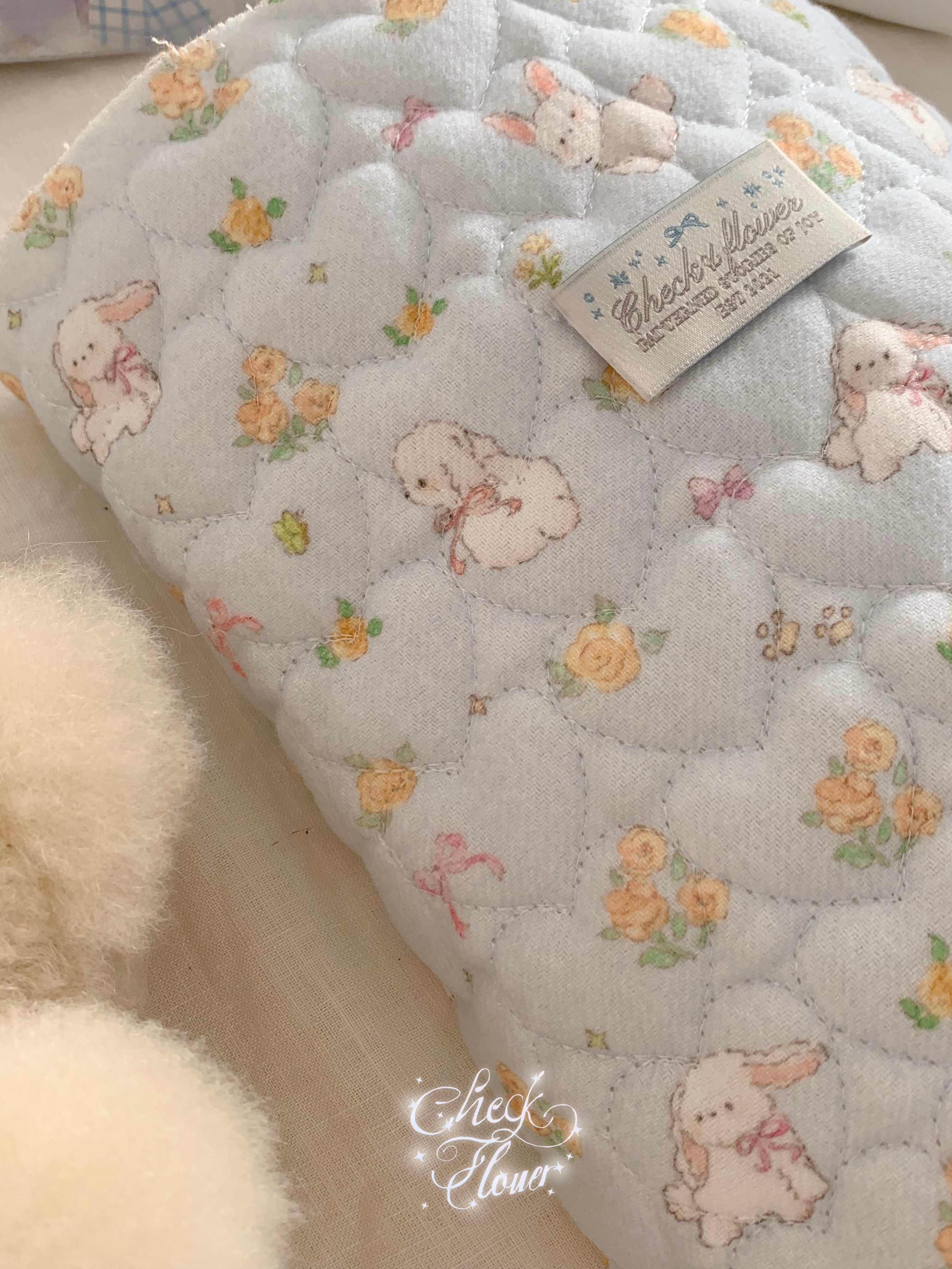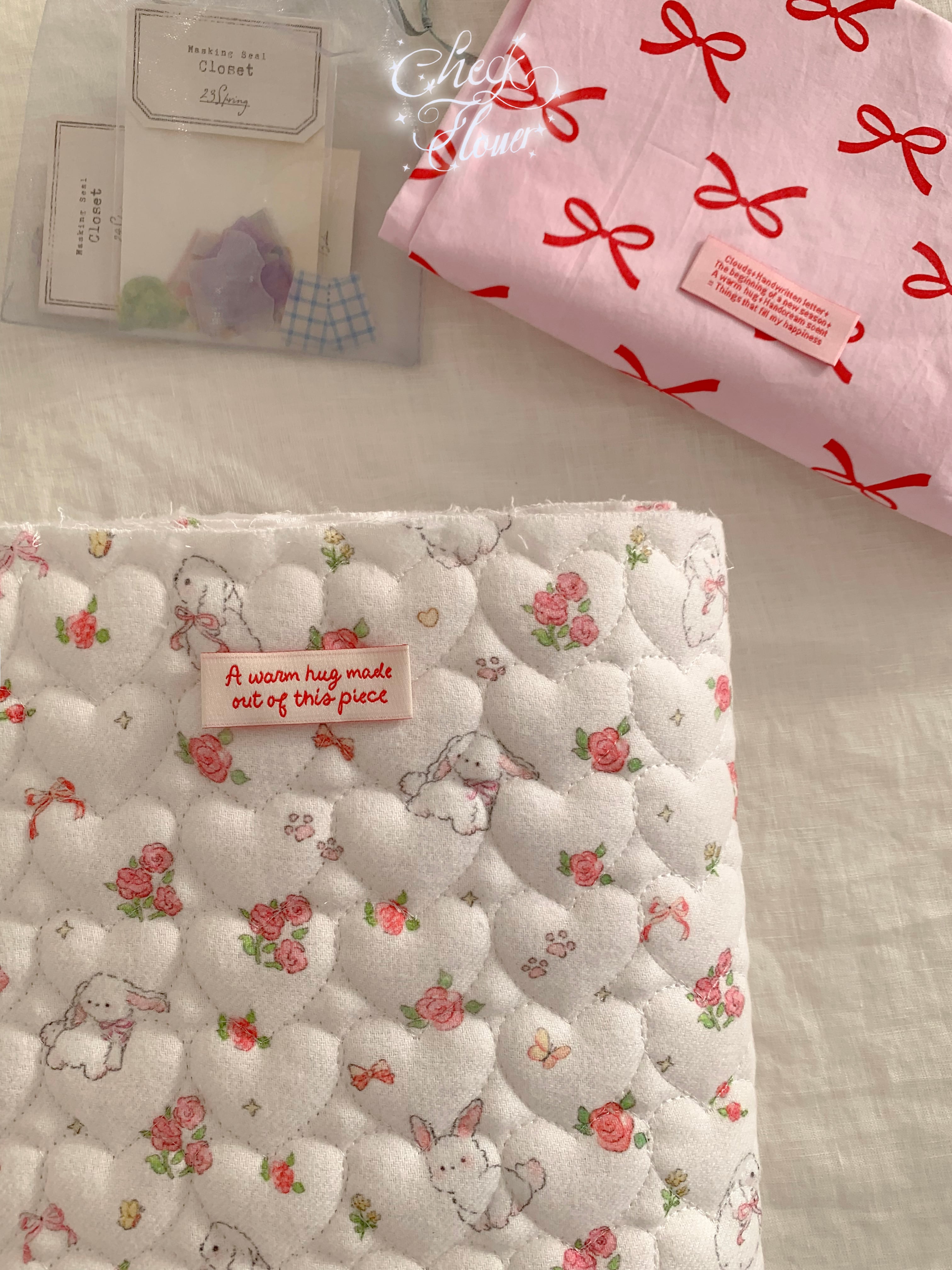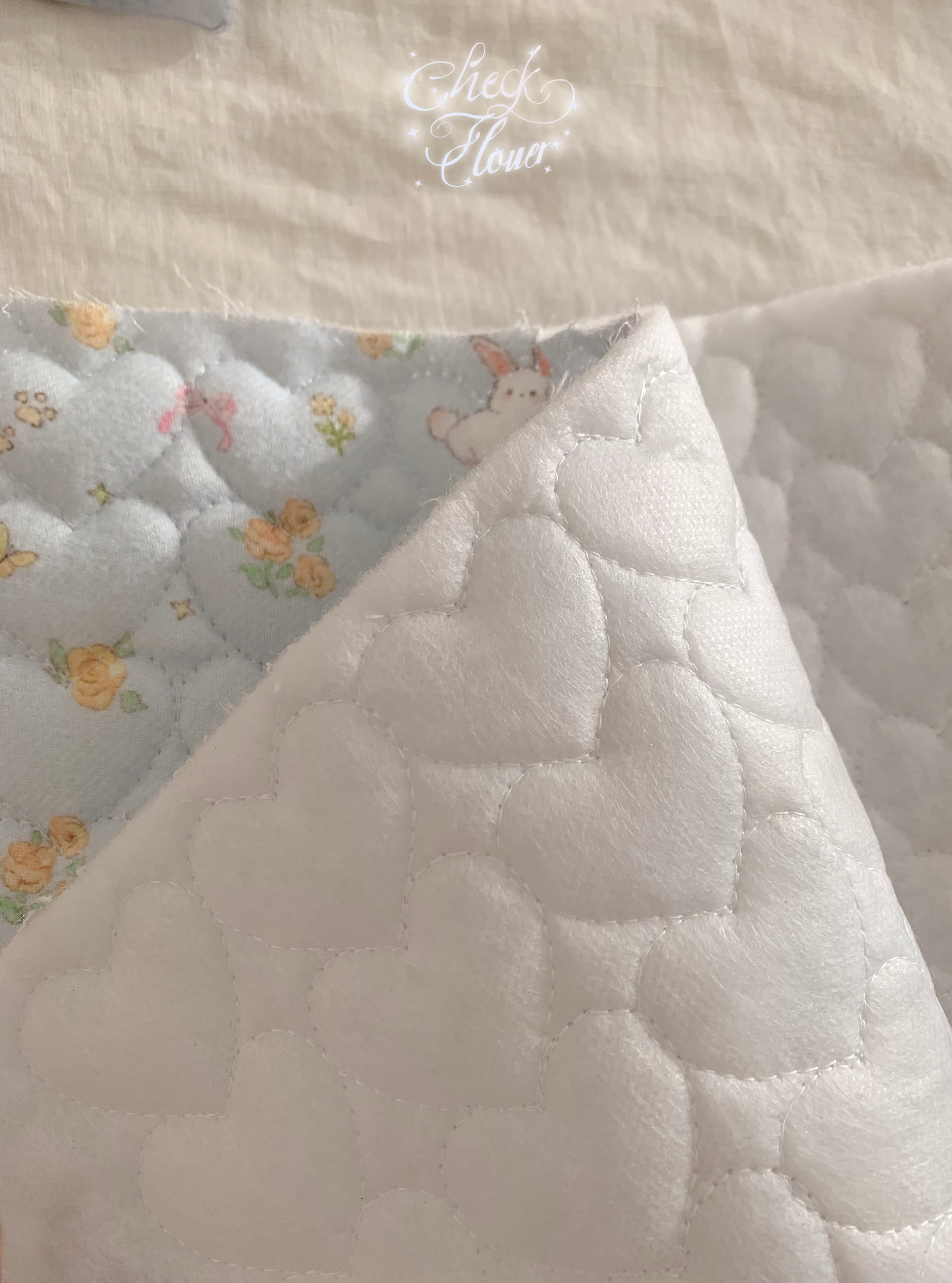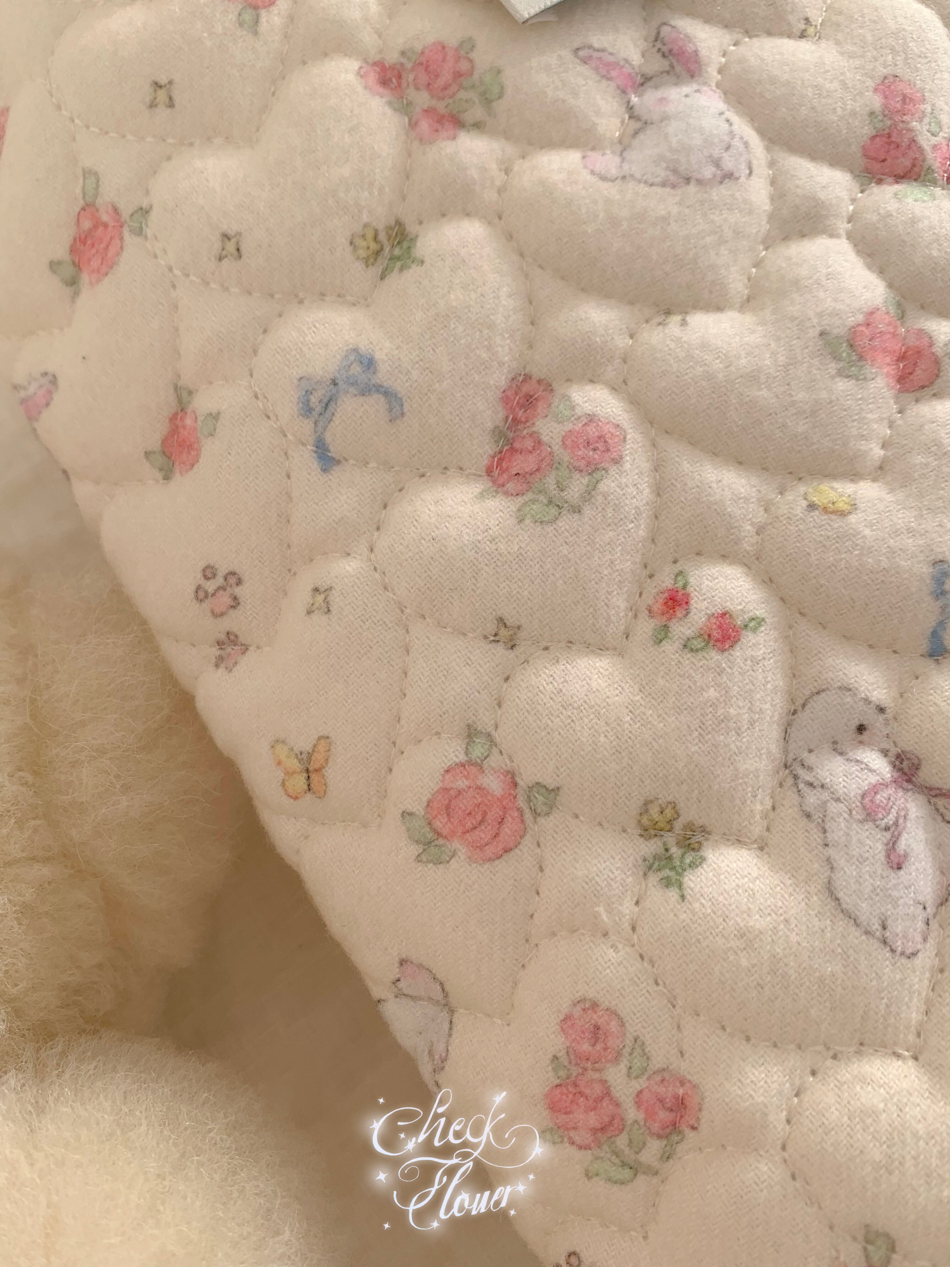 ※こちらの商品は厚みがあるため0.5ydのみ購入でもゆうパック送料800円となります。 ご了承ください。 本当に人気のある「お花とうさぎ」のキルトver しかもステッチがハートでこれは人気が出ること間違いなし♡ 素材 :コットン100%、4オンス、起毛生地をキルトにしています、裏面,不織布仕上げ カラー:レッド・ピンク・ブルー 生地幅:140cm 注文数:数量1=0.5y=45cm 原産国:韓国 その他:裏地は不織布 サイズ:ハートサイズ約3.8cm